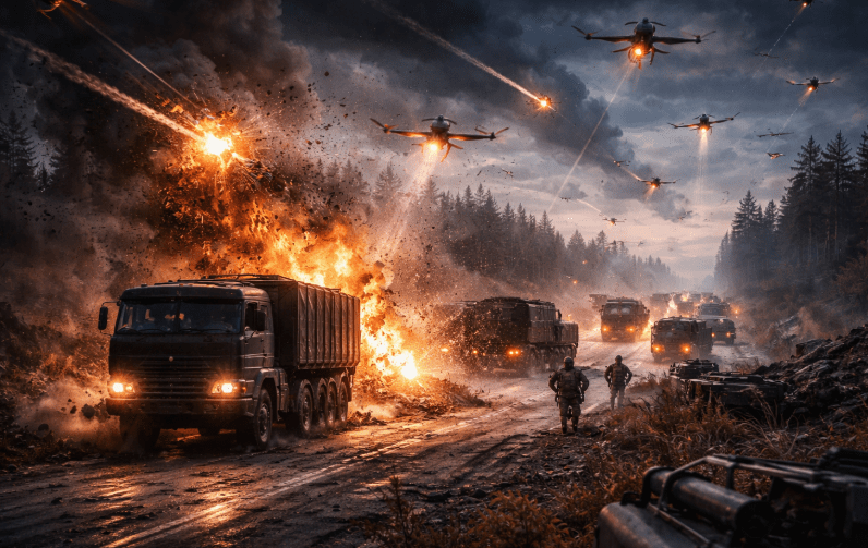 По их словам, некоторые участки дорог, ведущих к передовой, буквально усеяны подбитой техникой — грузовиками, бронемашинами и лёгким транспортом. Колонны снабжения вынуждены двигаться ночью и без света, однако даже это не всегда спасает.