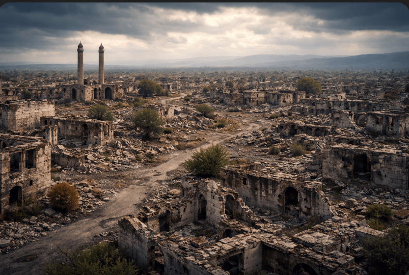 Карабах долгое время был не просто спорной территорией — он был территорией молчаливого ужаса. И если искать самый наглядный символ того, во что превратилась земля во время армянской оккупации, то достаточно назвать один город — Акдам. Когда-то живой, шумный, наполненный людьми, он был превращён в пустую оболочку. Каменные стены без крыш, выбитые окна, улицы, по которым гулял только ветер. Акдам называли «кавказской Хиросимой» — и это сравнение не было преувеличением.