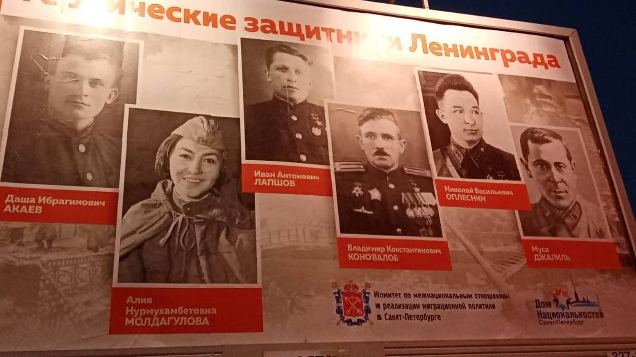 На площади Мужества появился плакат «Героические защитники Ленинграда», где среди прочих указана Алия Молдагулова. Но проблема в том, что вместо ее настоящей фотографии разместили фото актрисы, которая ее когда-то играла в кино», — пишет она. В качестве подтверждения своих слов она предоставила снимок плаката.